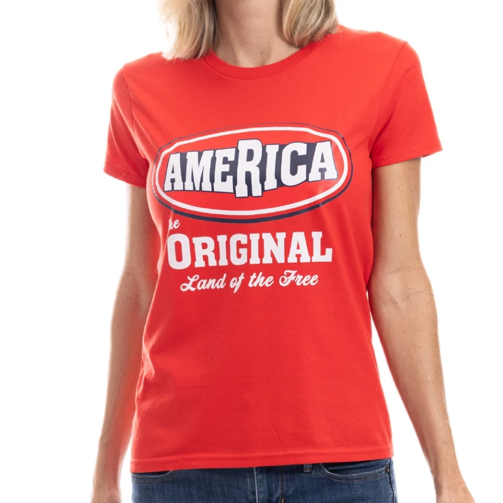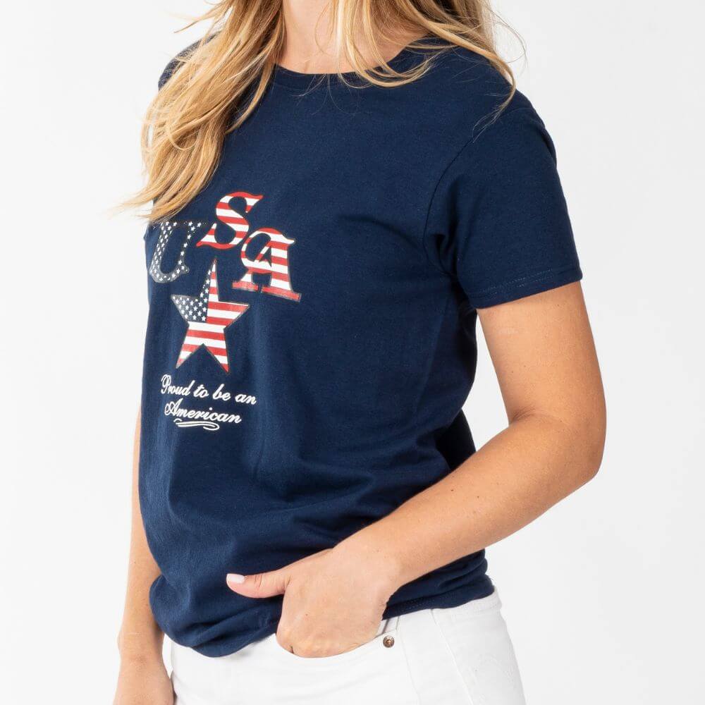 Women's Made in USA American Flag with Rhinestones Stars Shirt