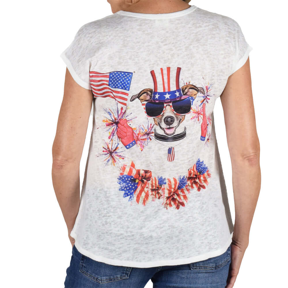 Women's Made in USA Cap Sleeve Patriotic Dog Top
